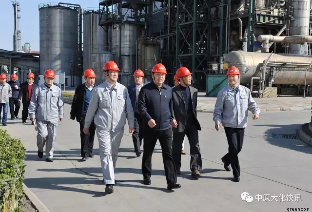 在天然气化工装置区,马富国在听取了有关生产装置的运行情况介绍后,又向化肥事业部的管理人员详细询问了他们在经营管理、员工培训、新产品开发等方面的好经验、好做法,并勉励大家不仅要优化装置运行,搞好安全生产,而且要不断进行知识更新,开阔眼界,努力开发出具有高附加值的产品,走高端发展的道路。在煤化工装置区,马富国亲切看望了生产一线员工,并对甲醇装置长周期运行所取得的成绩给予了充分肯定,同时要求甲醇事业部要安全、环保一起抓,精心操作,稳定运行。在中原大化公司展厅,马富国一行兴致勃勃地参观了公司发展历程展览,并指示中原大化要扎实做好绿宇公司新三板上市的各项工作,加快推进上市步伐。